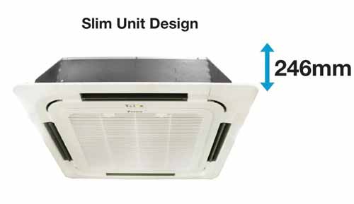 Dengan ketebalan hanya 246 mm, unit ini ideal untuk pemasangan di ruang plafon terbatas. Desainnya yang slim memudahkan instalasi sekaligus menghemat ruang.