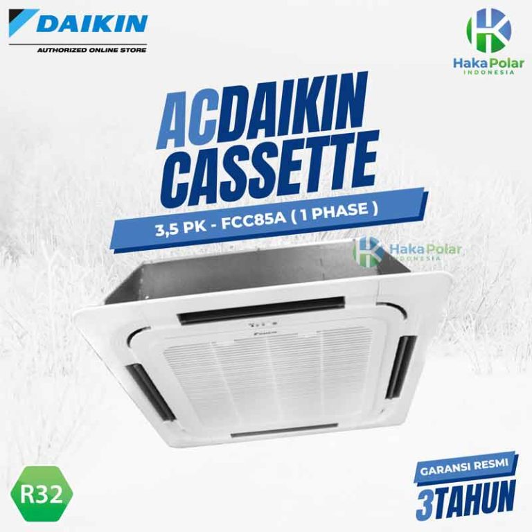 AC Daikin Cassette 3,5 PK FCC85AV14 merupakan AC Skyair Daikin buatan Malaysia yang sudah menggunakan Freo R32. unit AC Cassette ini dapat menghemat energi hingga 12% dibandingan dengan AC R-410A. Selain itu memiliki desain yang ringkas serta instalasi dan perawatan yang mudah.