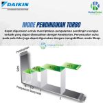 AC Daikin Split Standard kapasitas 1 pk dengan Mode Turbo dapat digunakan untuk menciptakan pengalaman pendingin ruangan terbaik yang dapat disesuaikan dengan keseharian. Penyesuaian suhu pada pola tidur juga dapat digunakan dengan mengaktifkan mode Sleep.