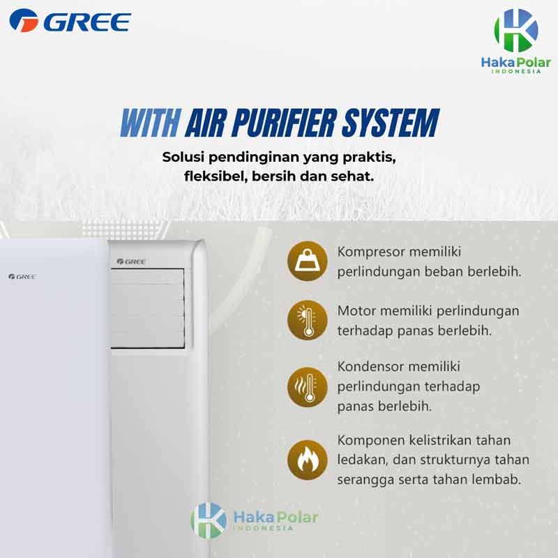 Dengan fitur lengkap dan portabilitas tinggi, GREE GPC-P2 Portable AC adalah solusi ideal untuk Anda yang membutuhkan pendingin ruangan fleksibel, praktis, dan tahan lama.